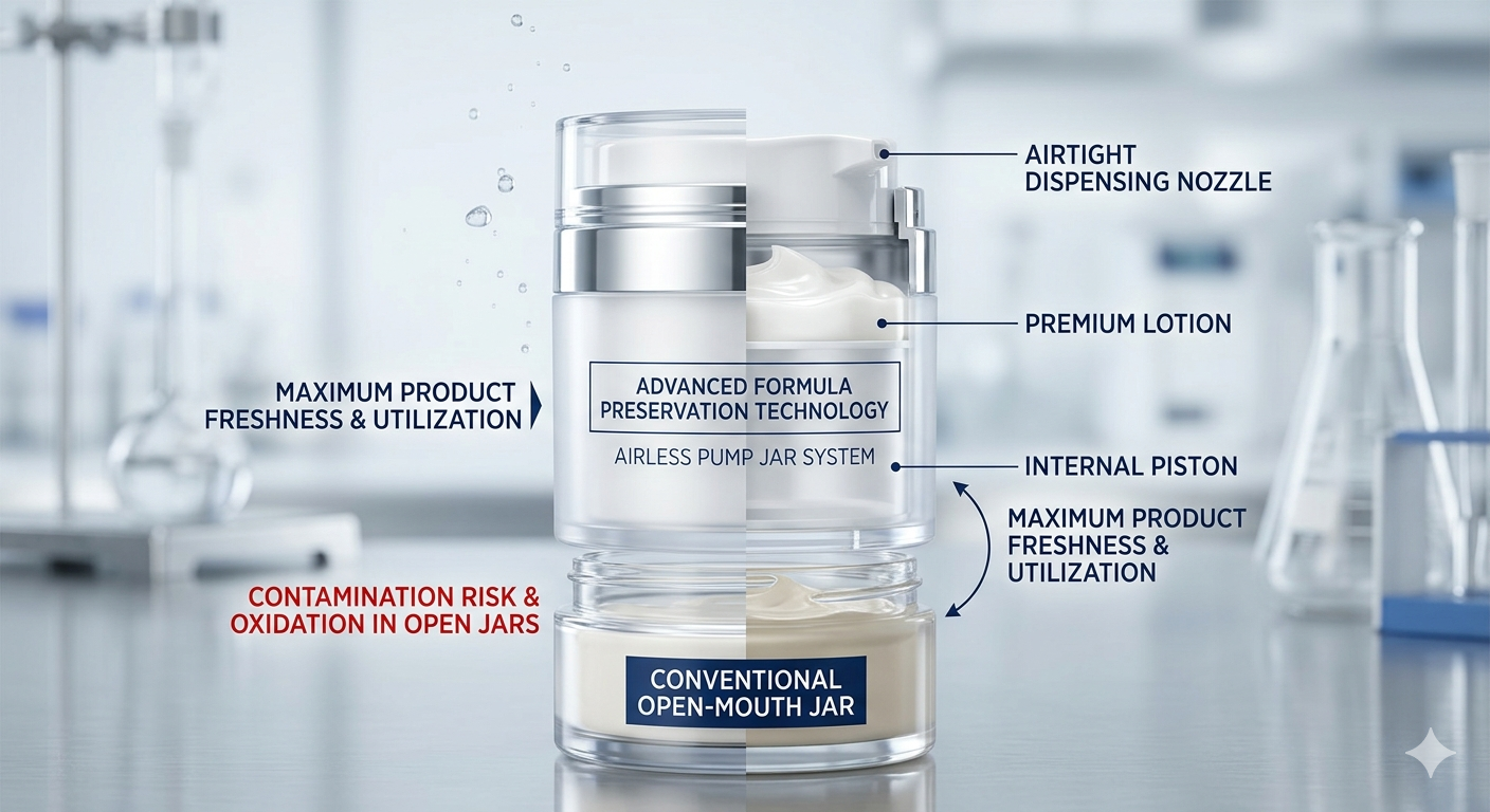 Hlavným dôvodom zmeny odvetvia je to nádoby na bezvzduchové čerpadlo výrazne predlžuje trvanlivosť prírodných produktov starostlivosti o pleť bez konzervačných látok tým, že eliminuje vystavenie vzduchu. Keďže spotrebitelia požadujú „čistú krásu“ s menším počtom syntetických stabilizátorov, musia obaly prevziať úlohu ochrany. Tradičné poháre umožňujú vstup kyslíka pri každom otvorení veka, čo vedie k rýchlej degradácii aktívnych zložiek, ako je vitamín C, retinol a rôzne rastlinné oleje.