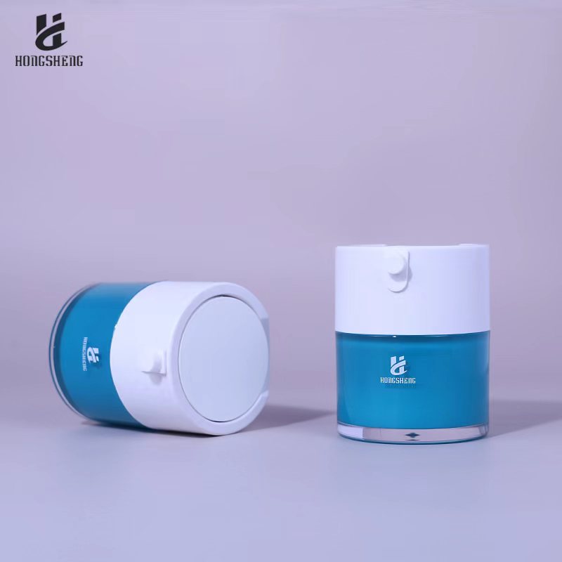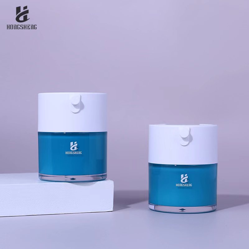 V oblasti funkčných produktov starostlivosti o pleť a luxusnej krásy skúsenosti s tesnením a používaním fliaš vákuovej pumpy priamo ovplyvňujú konzervačný účinok aktívnych zložiek vo výrobkoch a skúsenosti spotrebiteľov. HS-036 Modrá 30G 1oz plastová akrylová kozmetická nádoba Nádoby na krém Plastová nádoba na sérum na kozmetiku a starostlivosť o pleť sa stala ideálnym obalovým riešením pre špičkové produkty, ako sú esenciálne oleje, ampulky a esencie s vysokou koncentráciou, s dvojvrstvovou nepriepustnou štruktúrou, širokouhlým dizajnom a precíznou technológiou vákuovej konzervácie.